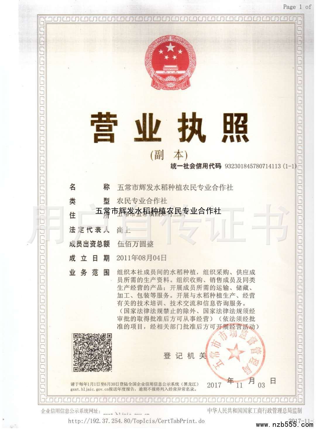 五常市輝發水稻種植農民專業合作社
