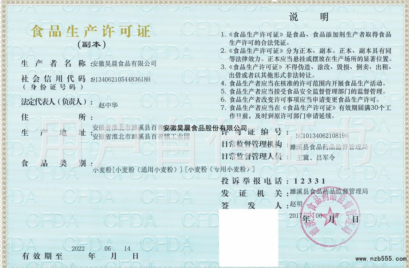 榮譽(yù)資質(zhì) 安徽昊晨食品股份有限公司