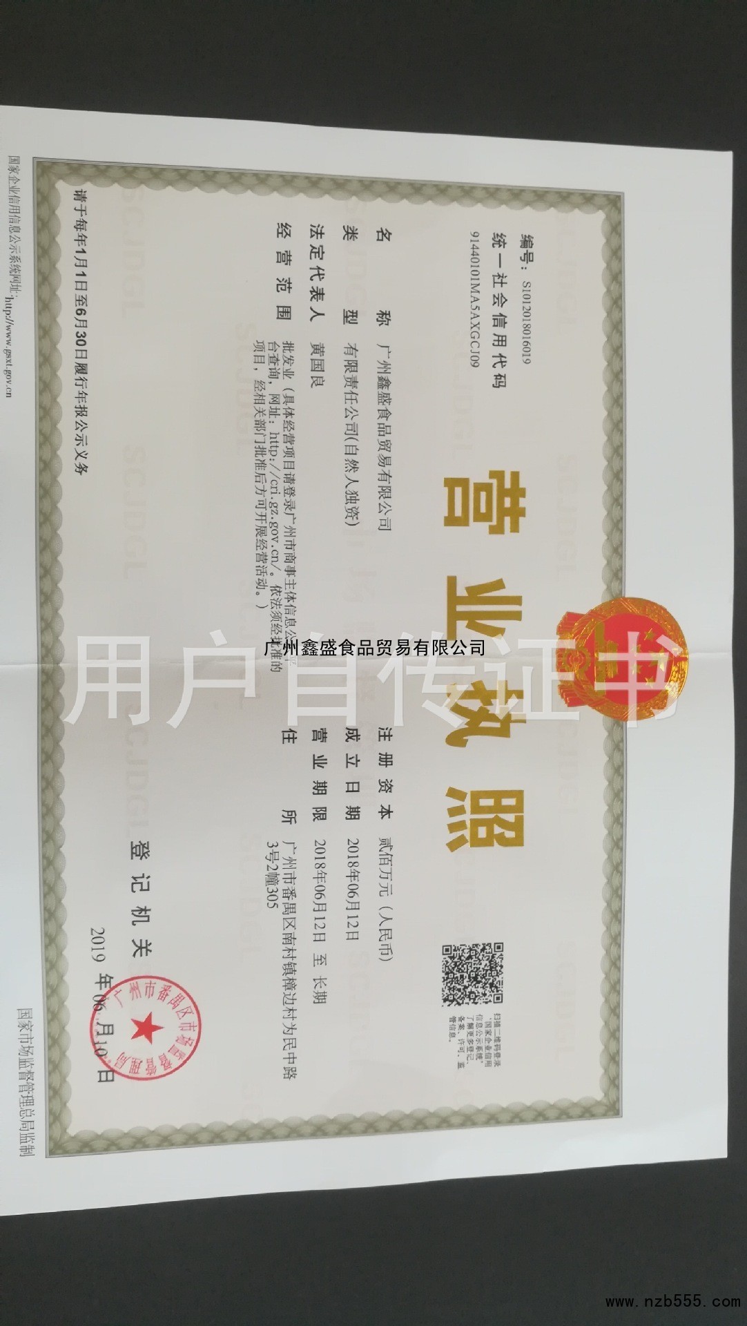 | 發(fā)證機(jī)構(gòu): | 廣州市番禺區(qū)市場監(jiān)督管理局 | 發(fā)證時(shí)間 : | 2019-06-10 |