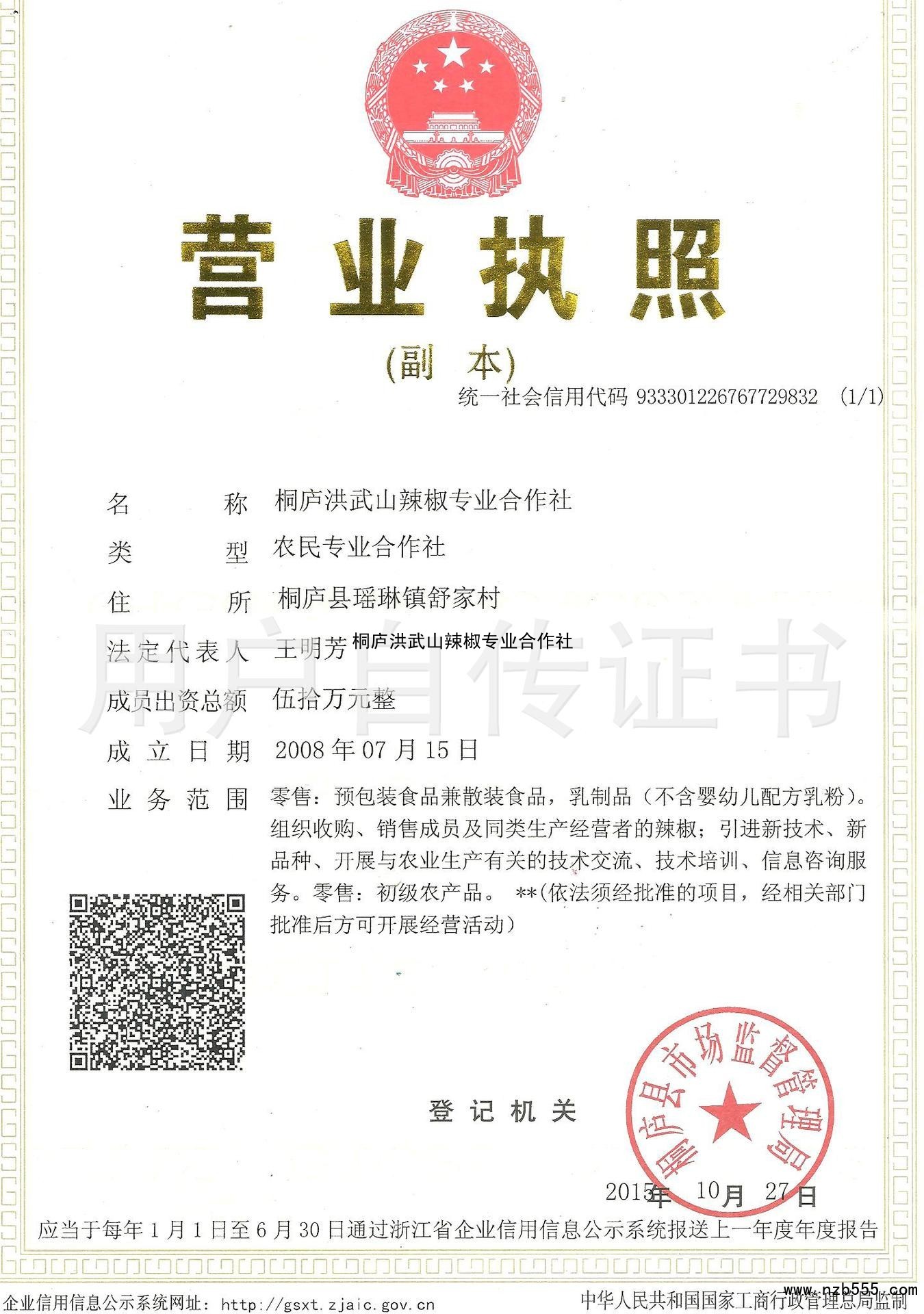 | 發(fā)證機(jī)構(gòu): | 桐廬縣市場(chǎng)監(jiān)督管理局 | 發(fā)證時(shí)間 : | 2015-10-27 |