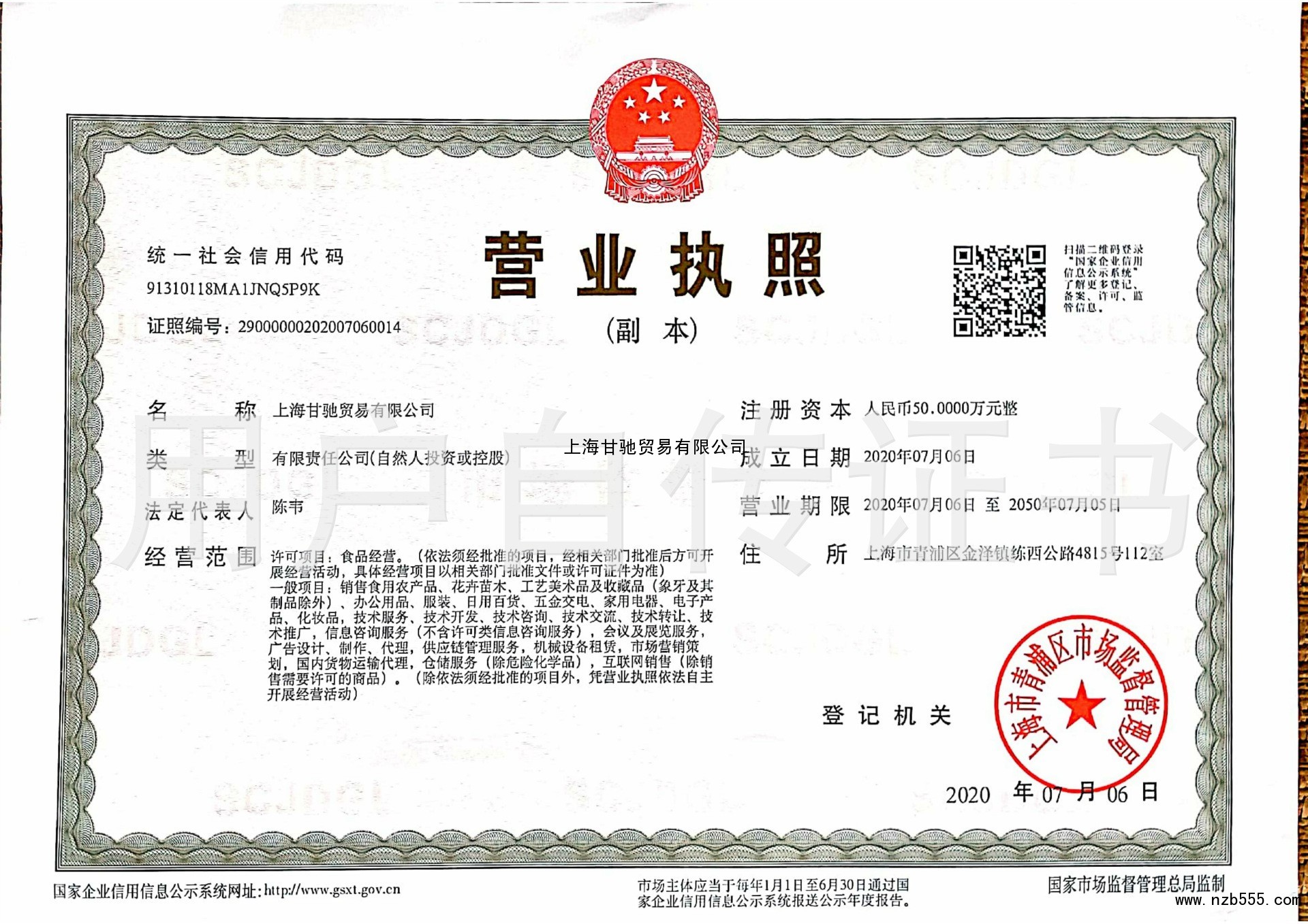 | 發(fā)證機(jī)構(gòu): | 上海市青浦區(qū)市場監(jiān)督管理局 | 發(fā)證時間 : | 2020-07-06 |