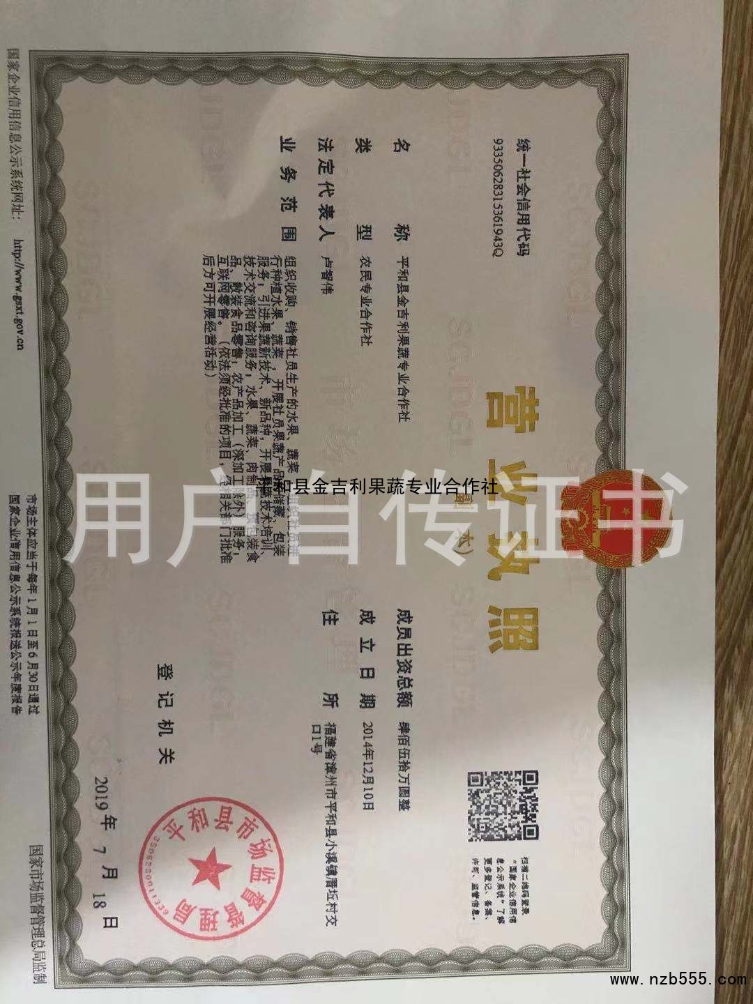 榮譽(yù)資質(zhì) 平和縣金吉利果蔬專(zhuān)業(yè)合作社