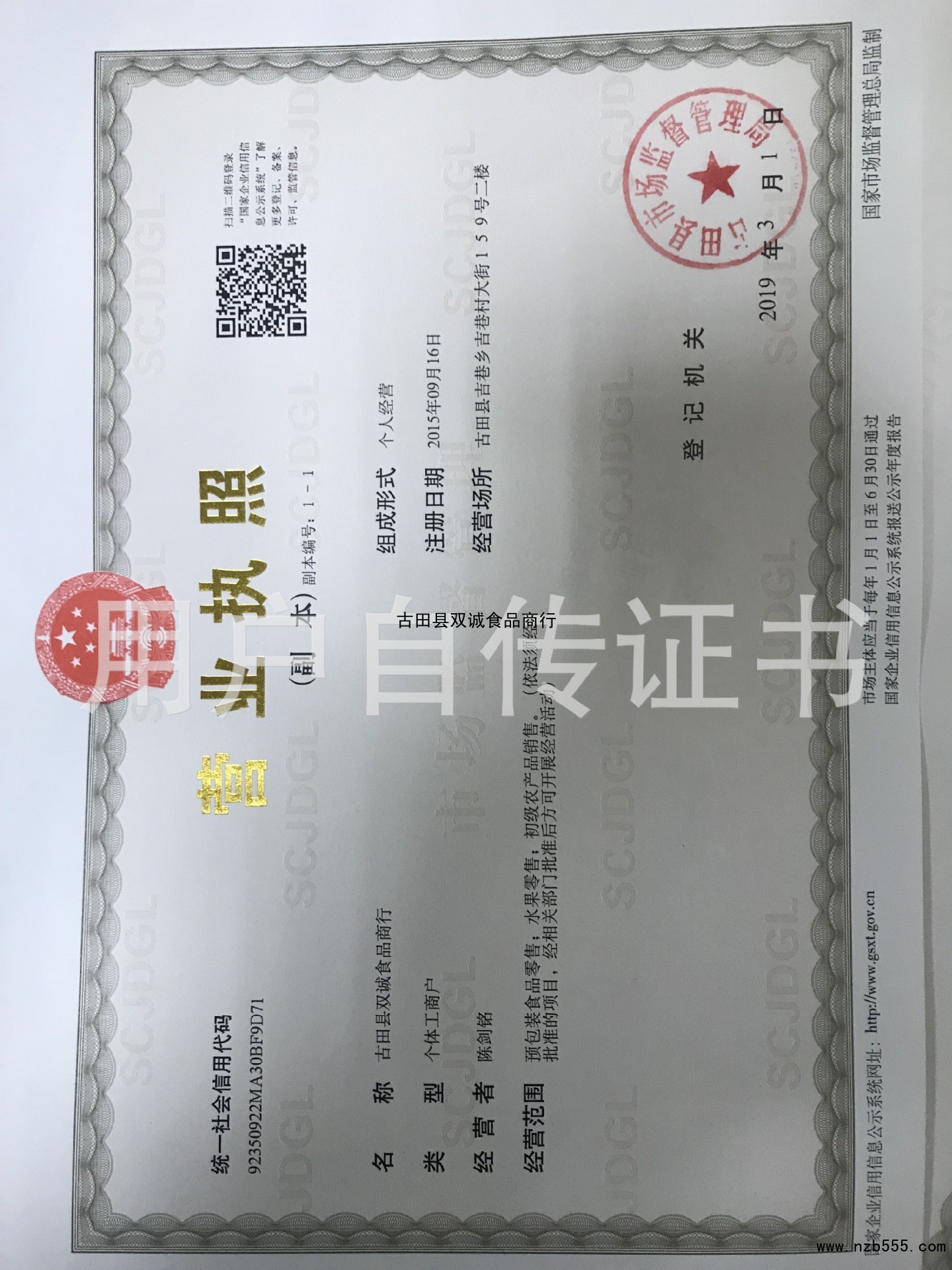 榮譽(yù)資質(zhì) 古田縣雙誠食品商行