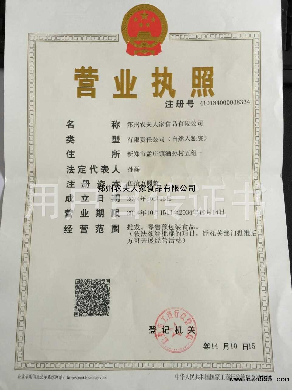榮譽(yù)資質(zhì) 鄭州農(nóng)夫人家食品有限公司