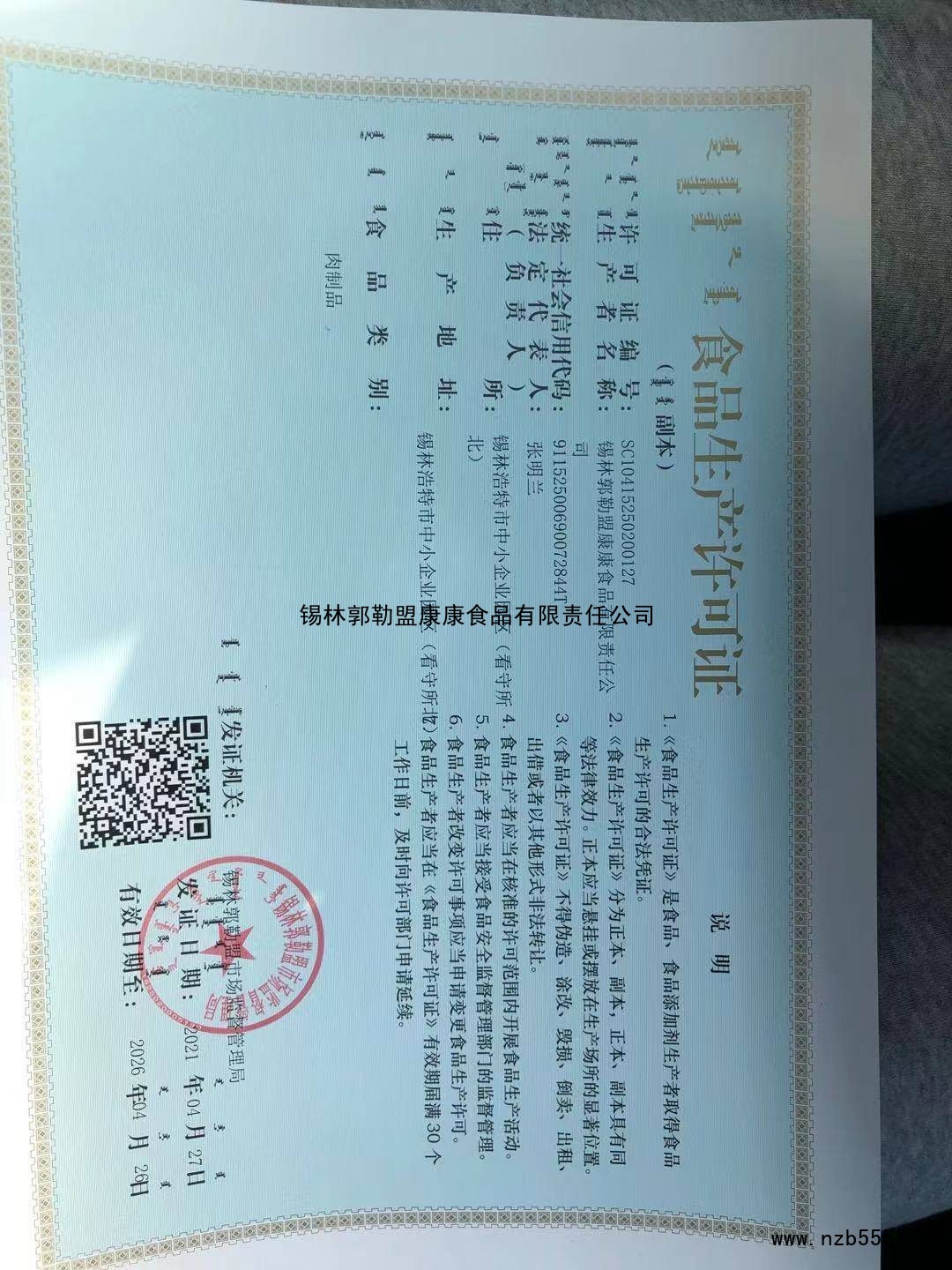 榮譽(yù)資質(zhì) 錫林郭勒盟康康食品有限責(zé)任公司
