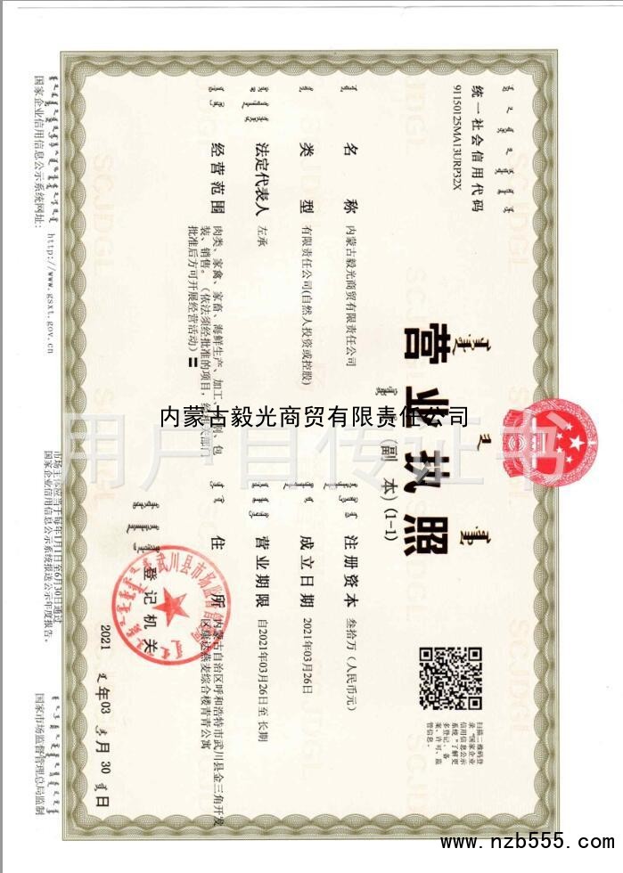 | 發(fā)證機(jī)構(gòu): | 武川縣市場(chǎng)監(jiān)督管理局 | 發(fā)證時(shí)間 : | 2021-03-30 |