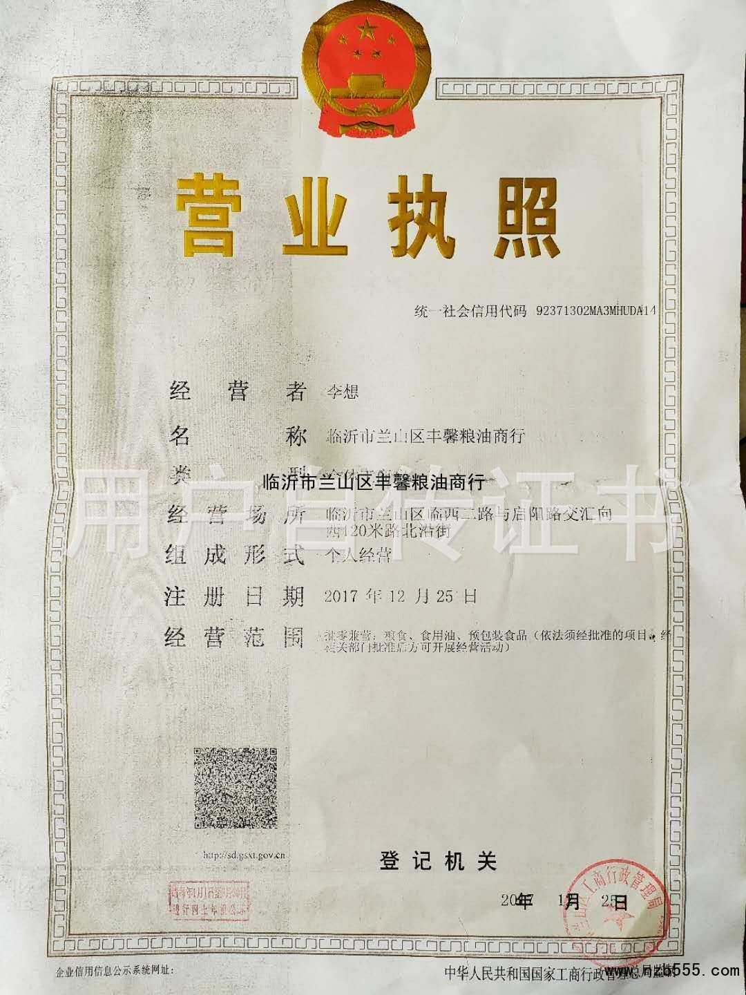 | 發(fā)證機(jī)構(gòu): | 臨沂市蘭山區(qū)工商行政管理局 | 發(fā)證時(shí)間 : | 2017-01-25 |