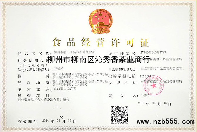 | 發(fā)證機(jī)構(gòu): | 柳州市柳南區(qū)市場(chǎng)監(jiān)督管理局 | 發(fā)證時(shí)間 : | 2019-04-16 |