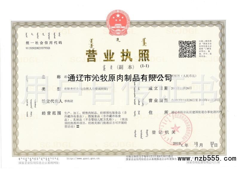 | 發(fā)證機(jī)構(gòu): | 通遼市科爾沁區(qū)市場(chǎng)監(jiān)督管理局 | 發(fā)證時(shí)間 : | 2013-11-26 |