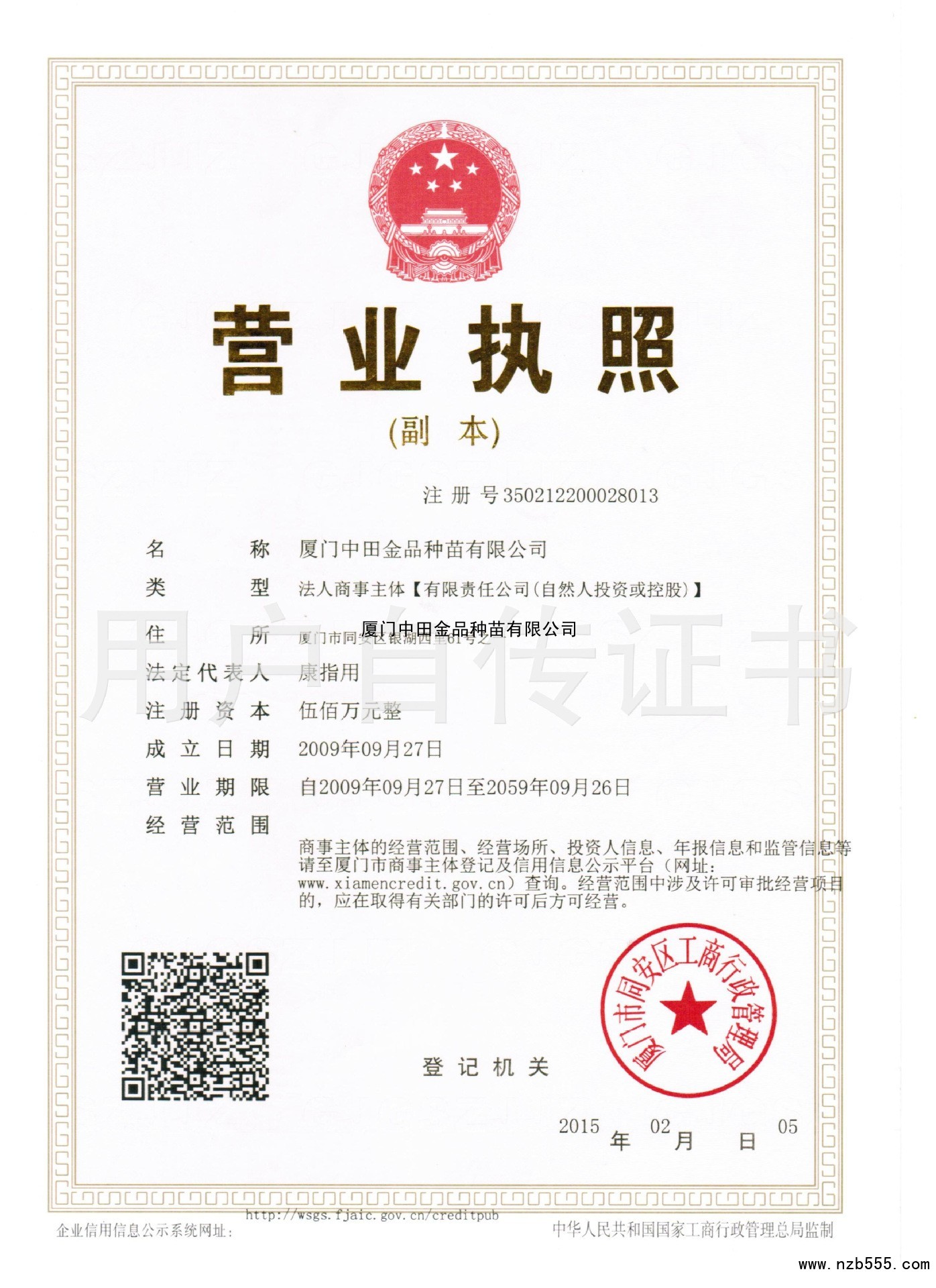 榮譽(yù)資質(zhì) 廈門中田金品種苗有限公司