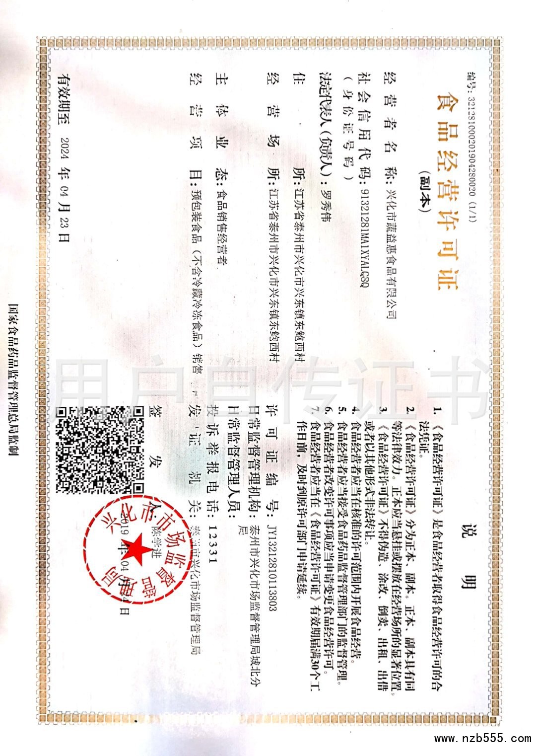 | 發(fā)證機(jī)構(gòu): | 興化市市場(chǎng)監(jiān)督管理局 | 發(fā)證時(shí)間 : | 2019-04-24 |