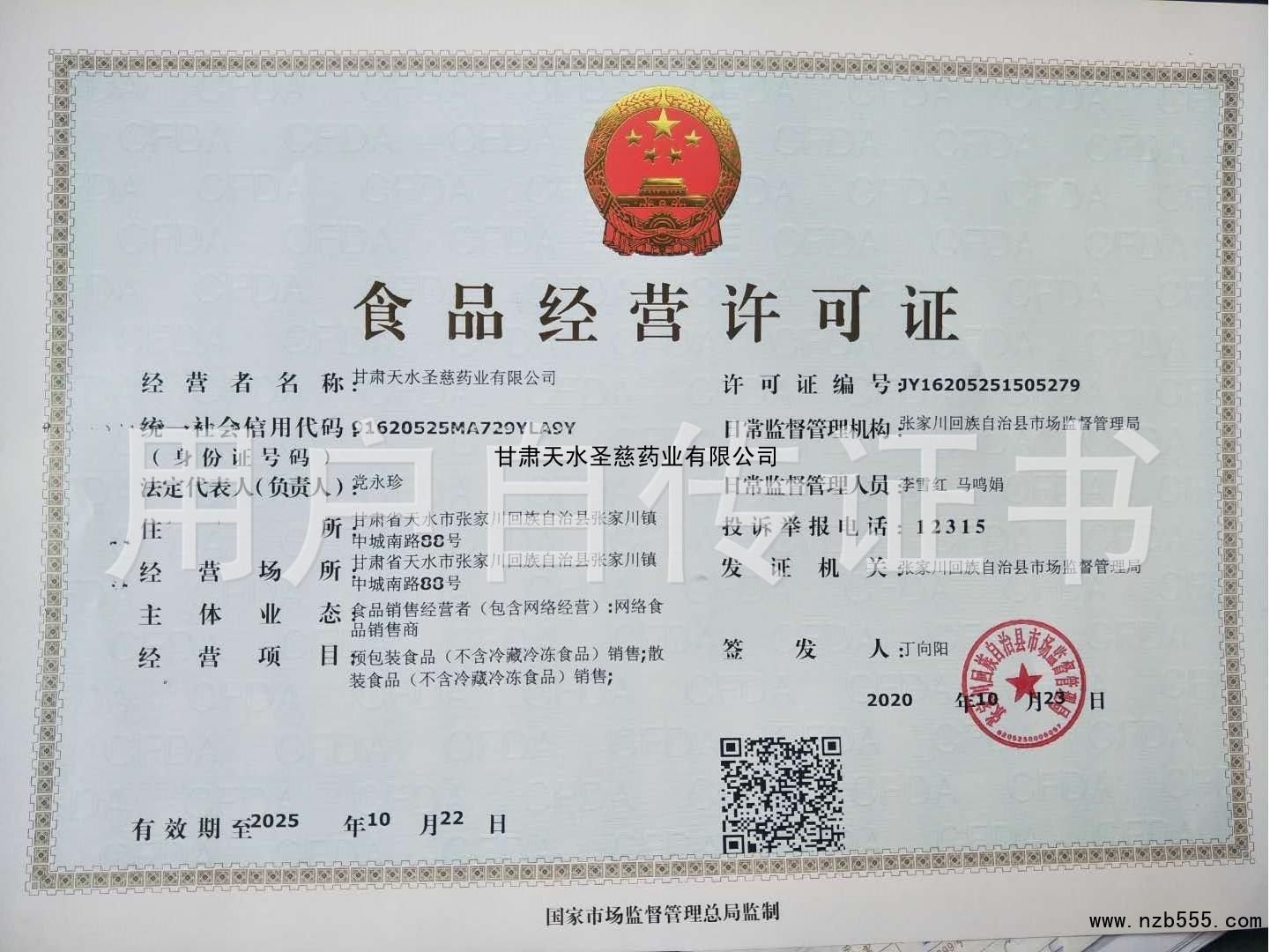 食品經營許可證(除乳制品、嬰幼兒配方乳粉、酒之外的生產許可證)