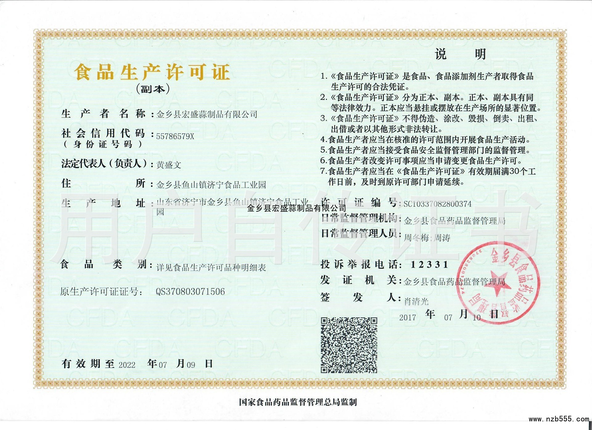 食品生產許可證(除乳制品、嬰幼兒配方乳粉、酒之外的生產許可證)