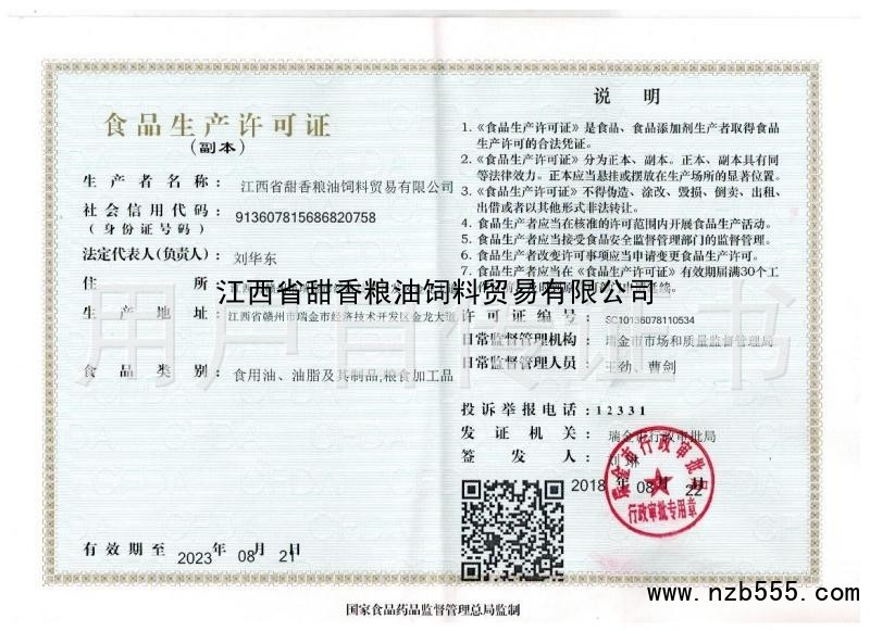 食品生產許可證(除乳制品、嬰幼兒配方乳粉、酒之外的生產許可證)