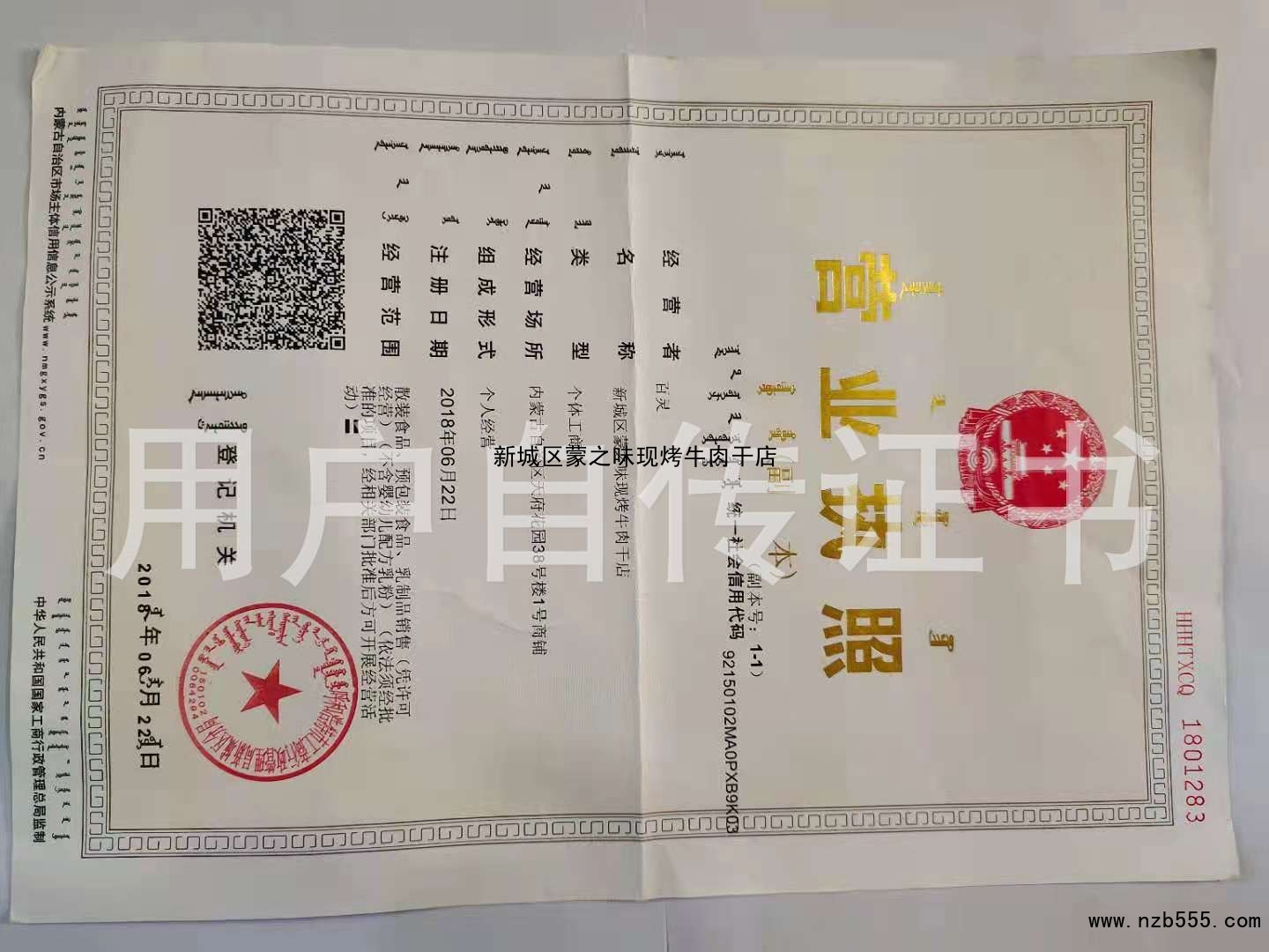 新城區蒙之味現烤牛肉干店